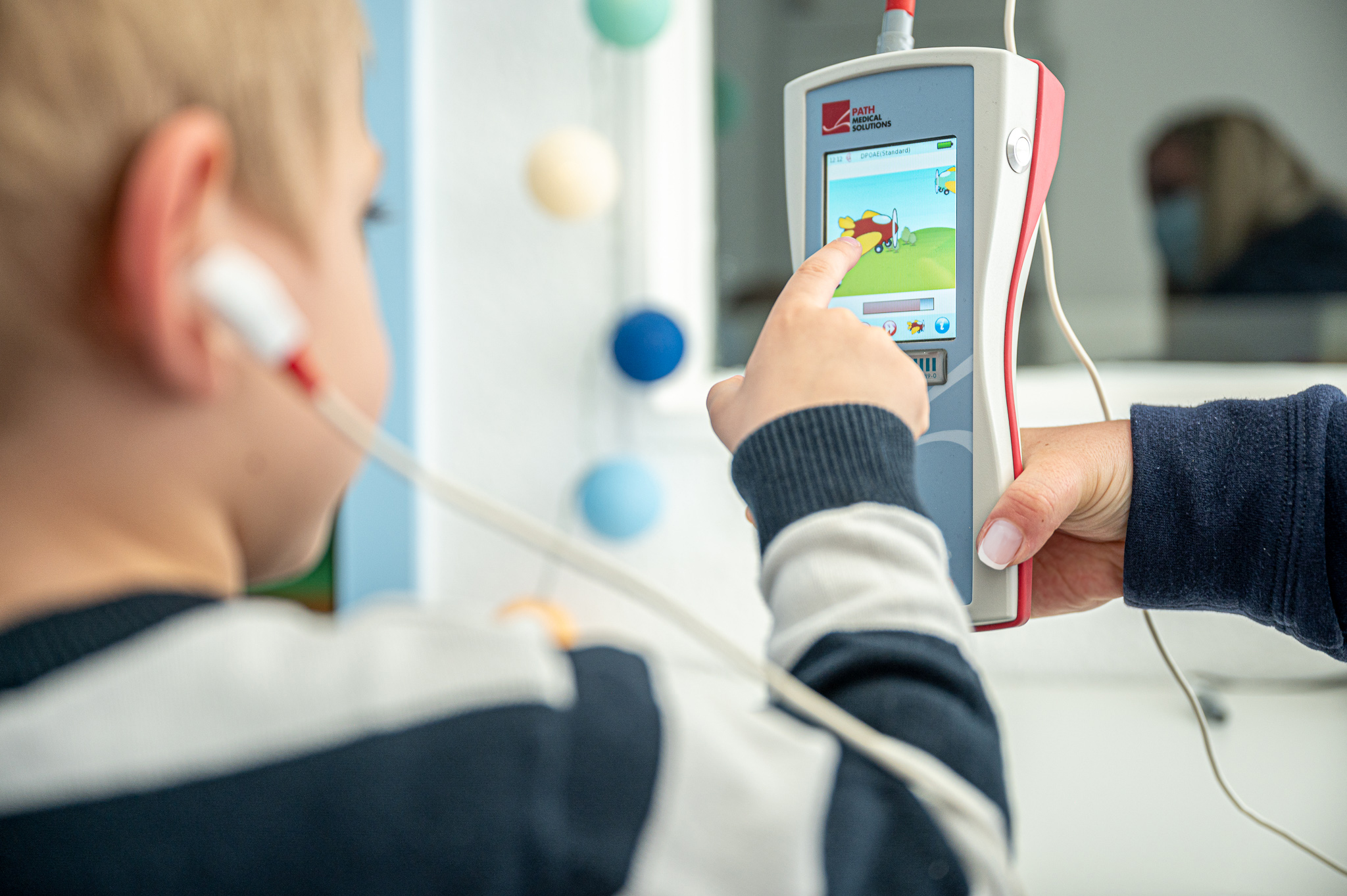 Wir führen Hörtestuntersuchungen bei Neugeborenen, Babys, Kleinkindern, Kindern und Jugendlichen durch. Viel Erfahrung und Geduld sind erforderlich bei den objektiven und subjektiven Hörtestuntersuchungen. Jedes Kind reagiert anders auf Gehörtes, deshalb verwenden wir speziell auf die jeweilige Entwicklungsstufe Ihres Kindes angepasste Hörtestverfahren. Subjektive Hörtestverfahren sind die Reaktionsaudiometrie, die Geräuschaudiometrie, Tonaudiometrie und Sprachaudiometrie. Objektive Hörtestverfahren sind die Tympanometrie, die Otoakustischen Emissionen (TEOAE, DPOAE) und die BERA.