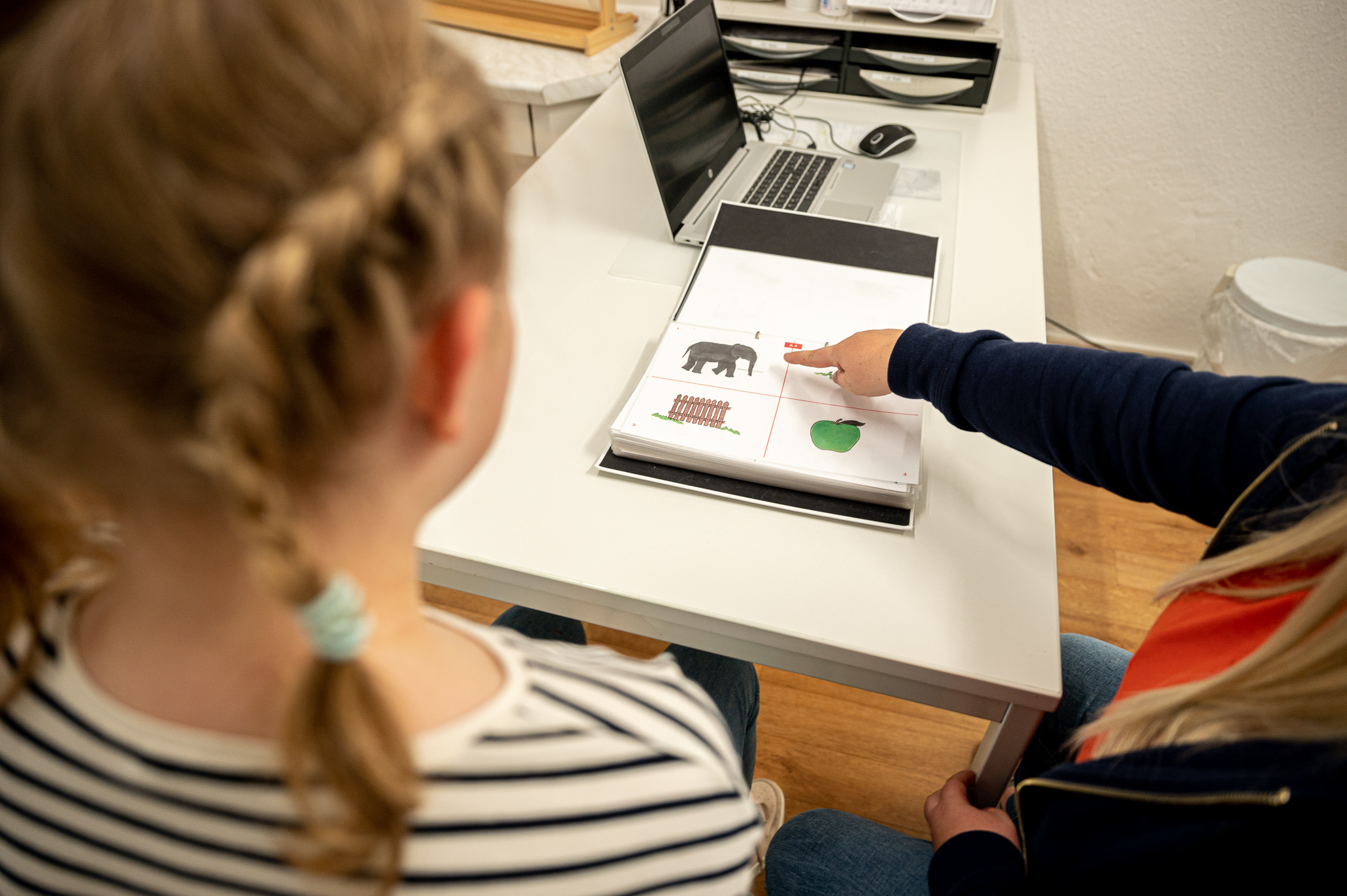 Da die meisten sprachlichen Probleme durch Hörstörungen-auch wiederkehrende Hörstörungen wie Paukenergüsse- verursacht werden, führen wir immer eine Hördiagnostik durch. Sprache und Hören gehören bei uns zusammen.